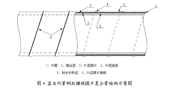 超高分子钢丝网骨架聚乙烯复合管材由直出内管、钢丝和外层膜片三种材料复合而成,适用于大、中口径的中、高压管。管材在生产时先在超高管材挤出机上直接挤出改性安博(中国)官方内管,然后再在内管上热熔复合钢丝和超高膜片。管材结构如图4所示。